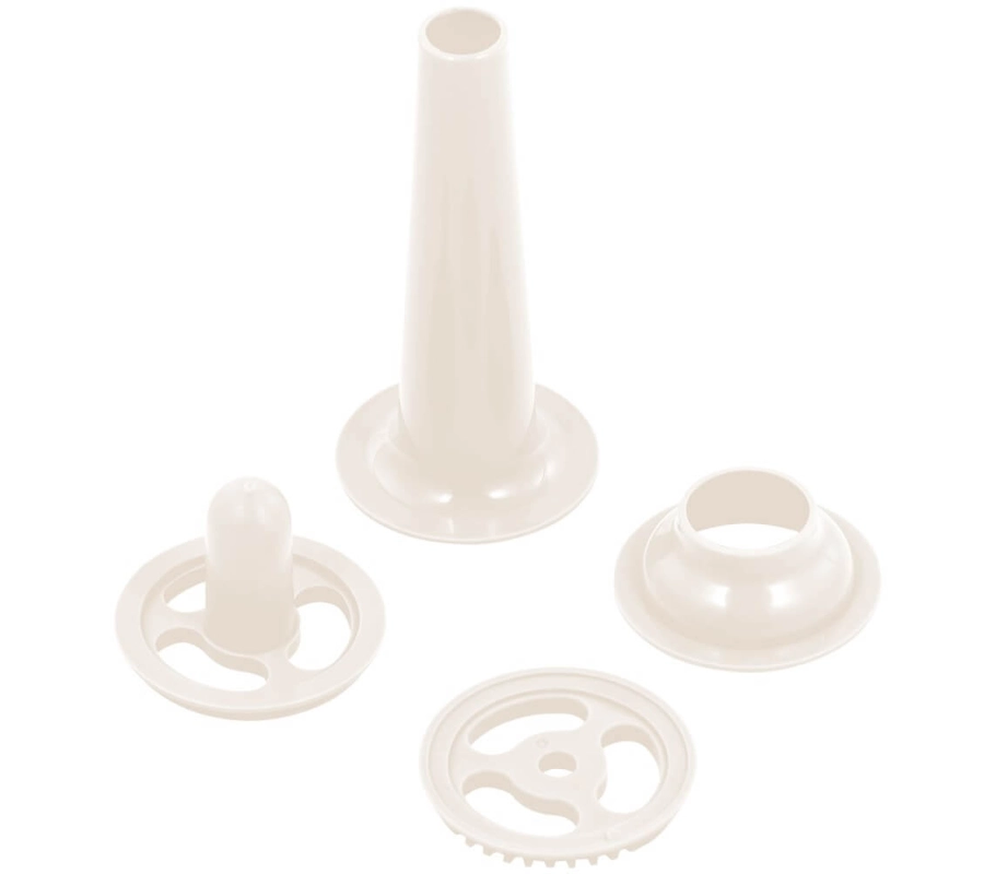 мелкая решётка, средняя решётка, крупная решётка, насадка для колбас, насадка-разделитель, формирующая насадка, конусная насадка